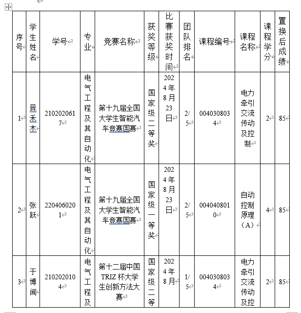 肉漫屋 2023-2024学年第二学期创新创业竞赛获奖学生置换课程学分初审结果公示