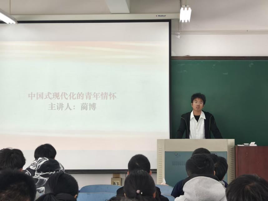 举办题为“中国式现代化的青年情怀”专题讲座,本次培训由2021级辅导员蔺博主讲。蔺博围绕中国式现代化以及新时代背景下青年一代的发展机遇和责任担当,强调了青年大学生应当坚定理想信念,脚踏实地、志存高远,将个人发展融入到中华民族伟大复兴的洪流之中。