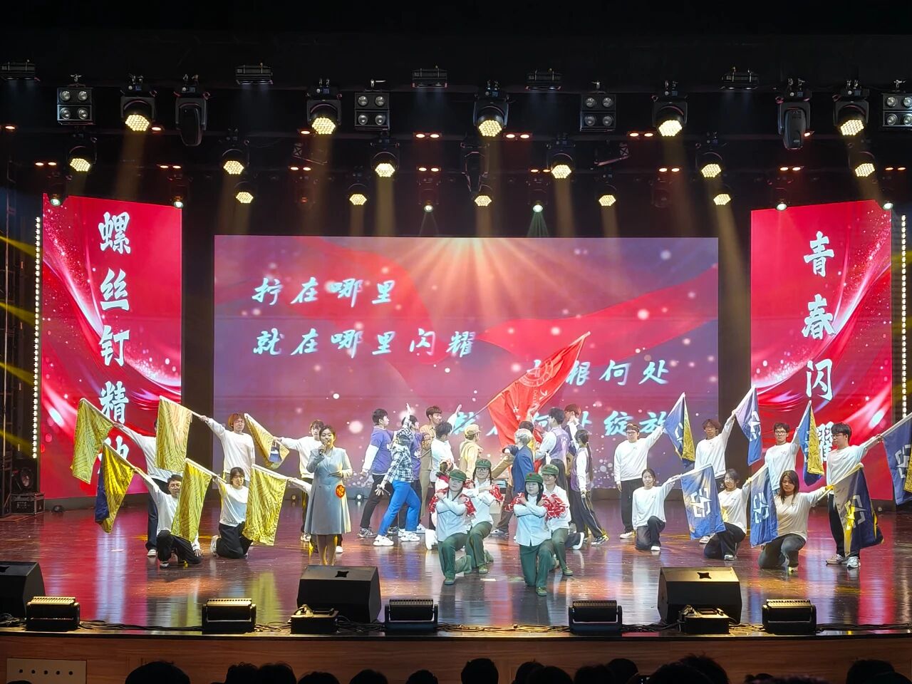 在主题团课展示环节,他们以 “螺丝钉精神” 为主题进行团课展示。演员们在舞台上跨越时空,以雷锋热心勤劳的精神为连接点,联动数十年前作为雷锋精神发祥地的辽宁抚顺与如今热心学子所在的交大校园。这堂团课不仅讲述了雷锋事迹,更将雷锋精神与当代青年的责任担当深度融合。